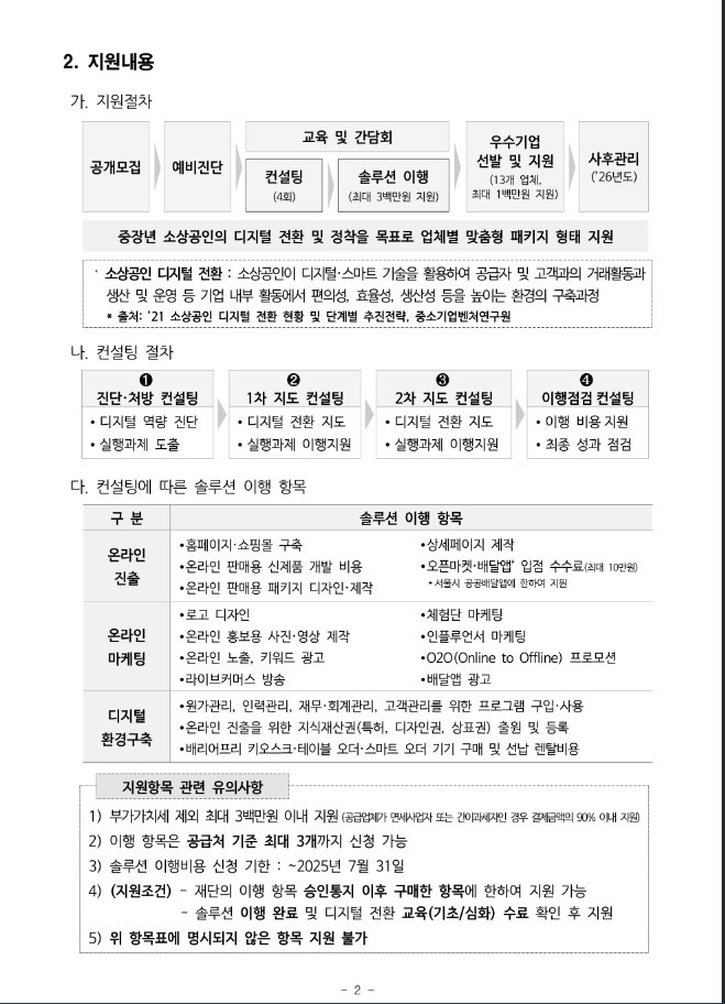 사업명: 2025년 상반기 중장년 소상공인 디지털 전환 지원사업